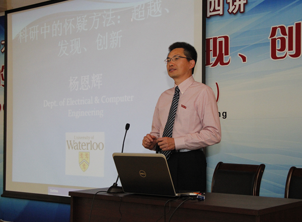 世界华人杰出科学家、公司杰出员工代表杨恩辉教授来校讲学 2015年9月6日,世界杰出华人科学家、加拿大滑铁卢大学终身教授、加拿大皇家科学院院士、公司杰出员工代表杨恩辉教授为公司师生作《科研中的怀疑方法:超越、发现、创新》的专题讲座,并与bwin必赢青年师生...
